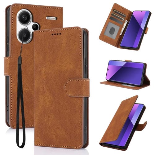 Funda de Piel de Becerro con Textura de Piel de Fantasía para Redmi Note 13 Pro+ 5G (Marrón)