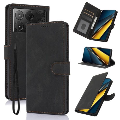 Funda de Piel de Becerro con Textura de Piel de Fantasía para Xiaomi Poco X6 Pro 5G (Negra)