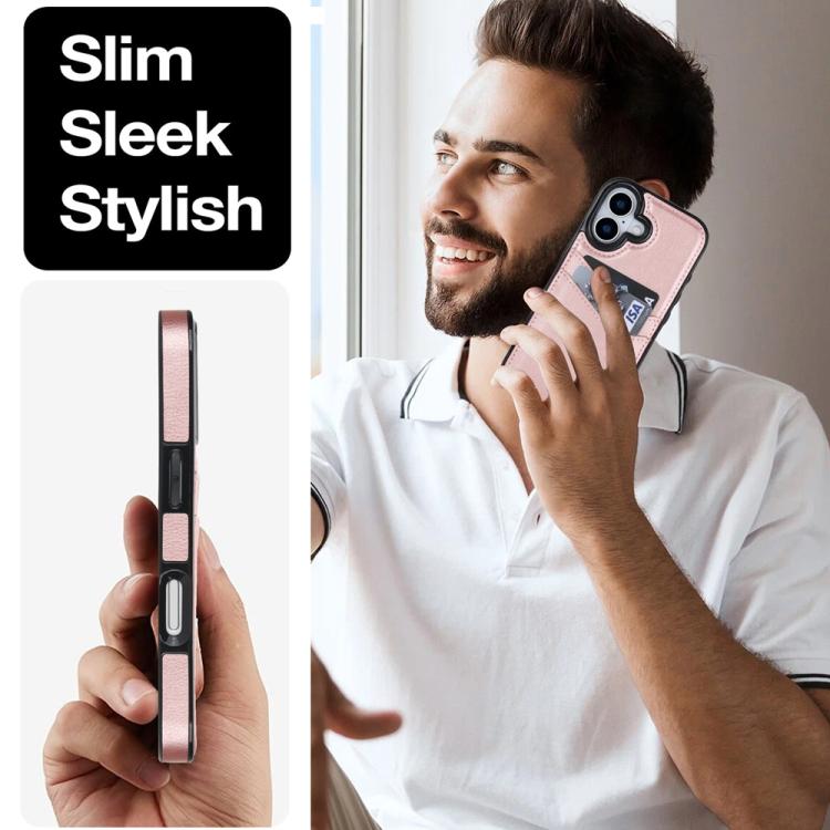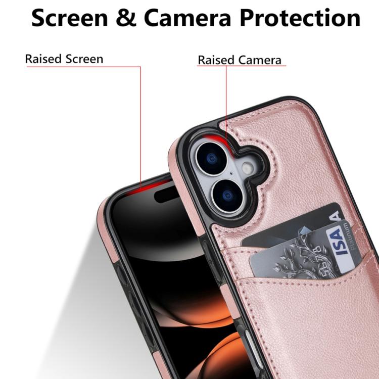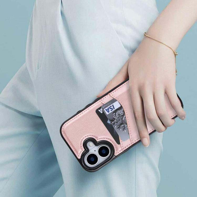 Funda de piel de lichi con ranuras para tarjetas para iPhone 17 (oro rosa)