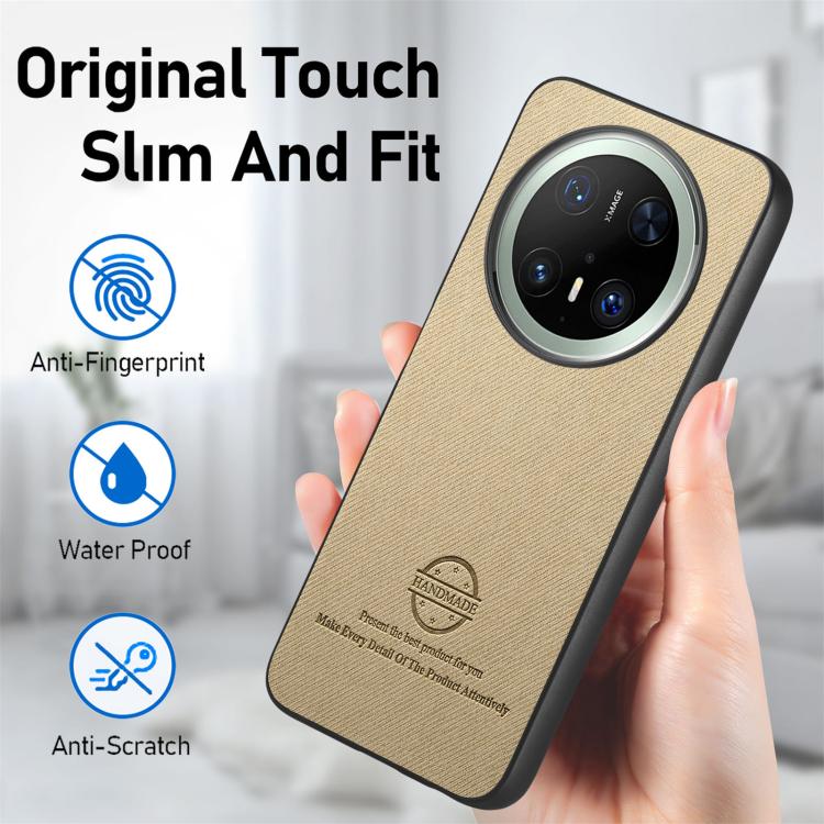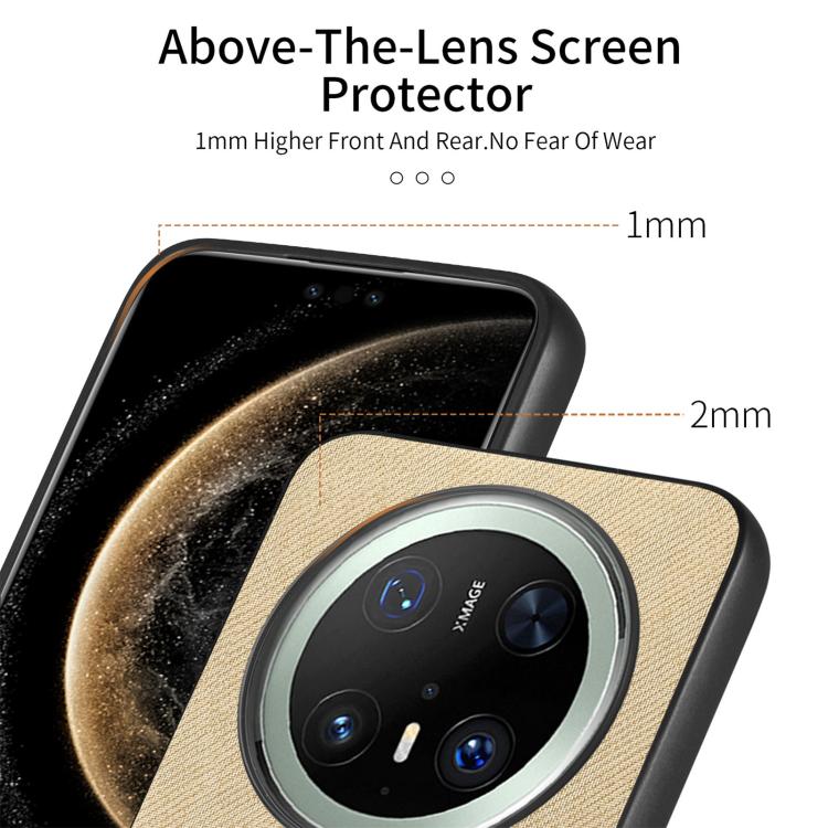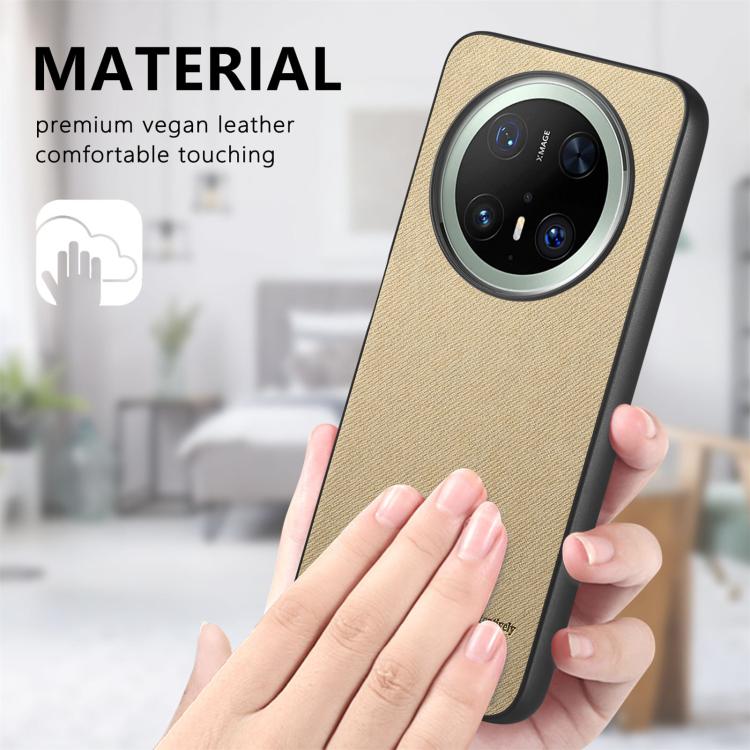 Funda de Piel de Sarga con Parte Trasera de Cuero para Huawei Mate 70 (Caqui)