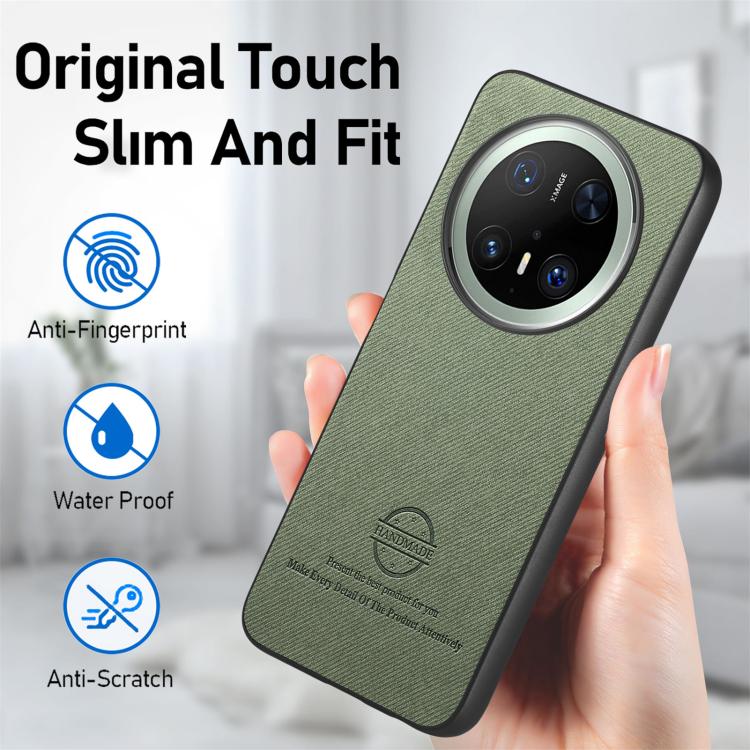 Funda de Piel de Sarga con Parte Trasera de Cuero para Huawei Mate 70 Pro+ (Verde)