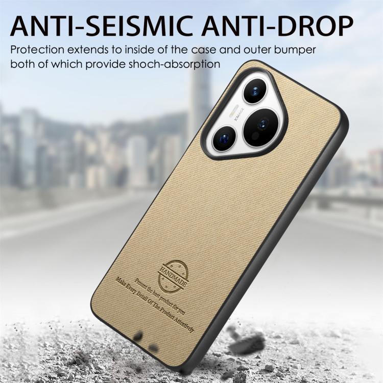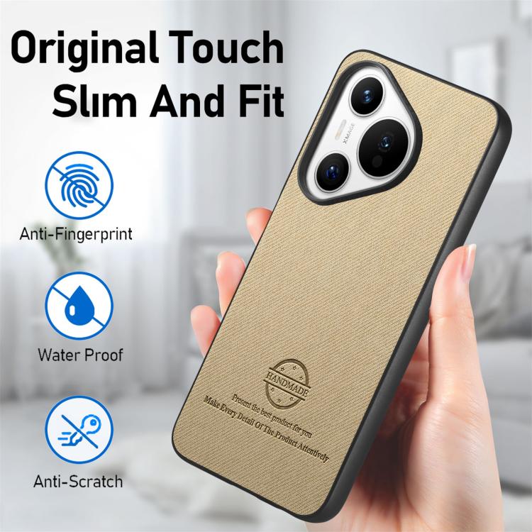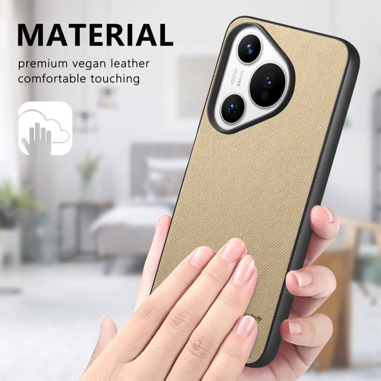 Funda Piel de Sarga con Parte Trasera de Cuero para Huawei Pura 70 (Caqui)