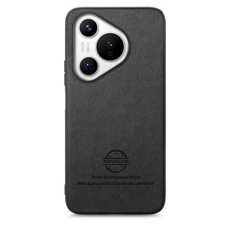 Funda de Piel de Sarga con Parte Trasera de Cuero para Huawei Pura 70 Pro (Negra)