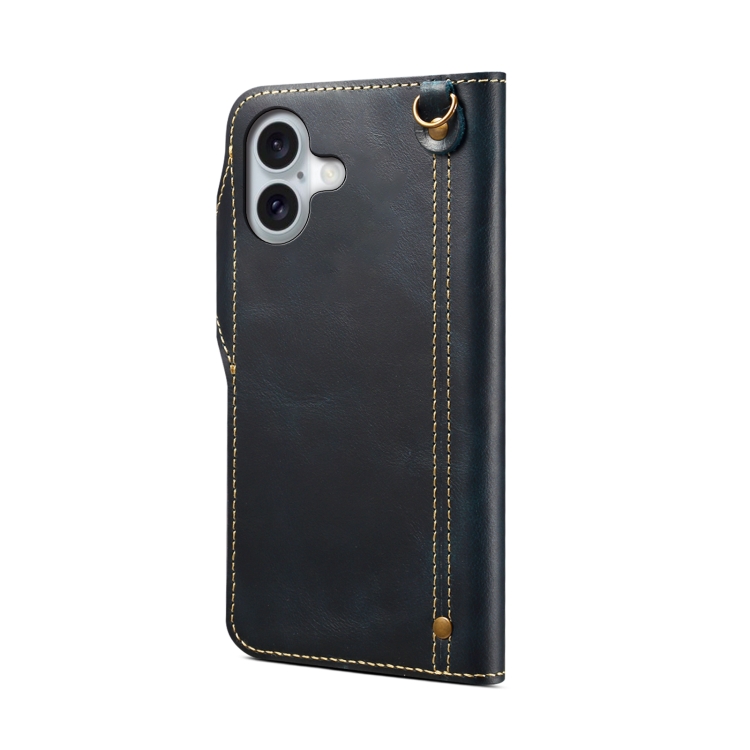Funda de Piel de Vaca Denior B01 con Botón Magnético y Cera de Aceite para iPhone 16 Plus (Azul)