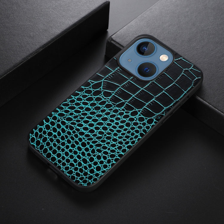 Funda para iPhone 13 Mini Piel de Vaca con Capa Superior de Cocodrilo (Azul Cian)