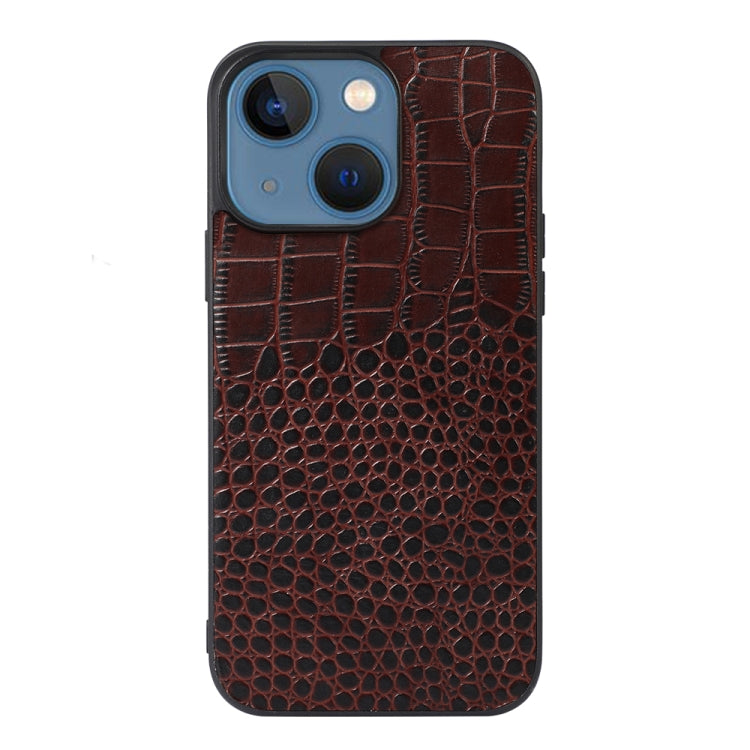 Funda para iPhone 13 Mini Piel de Vaca con Capa Superior de Cocodrilo (Café)