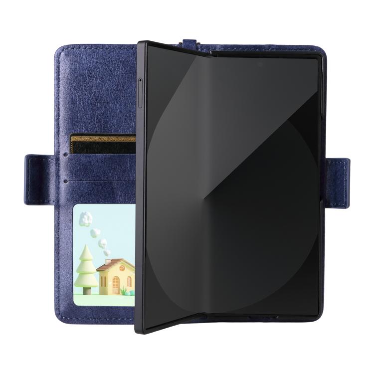 Funda de piel de vacuno cruzada con ranuras para múltiples tarjetas para Samsung Galaxy Z Fold2 5G (azul)