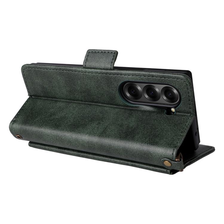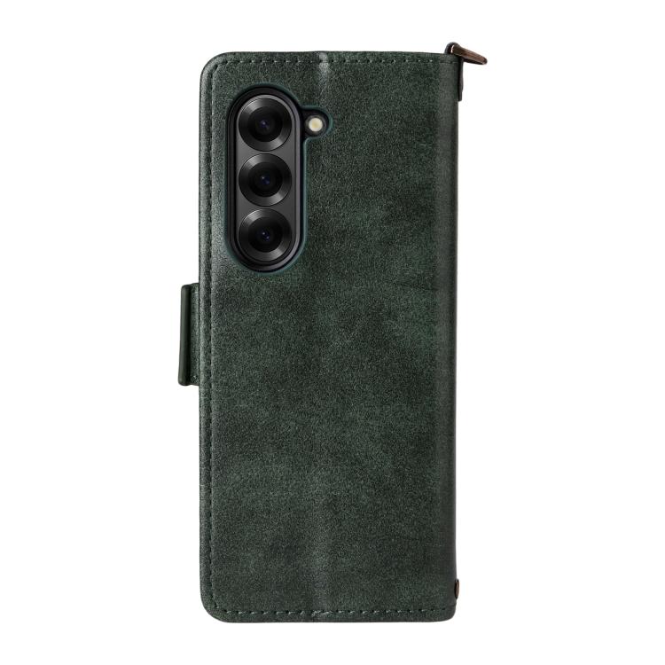 Funda de piel de vacuno cruzada con ranuras para múltiples tarjetas para Samsung Galaxy Z Fold2 5G (verde)
