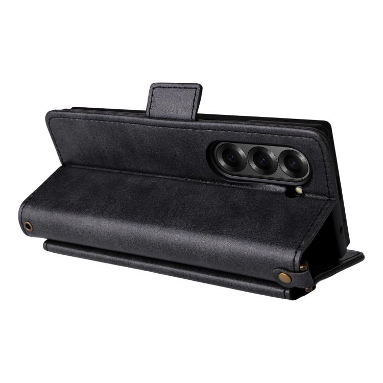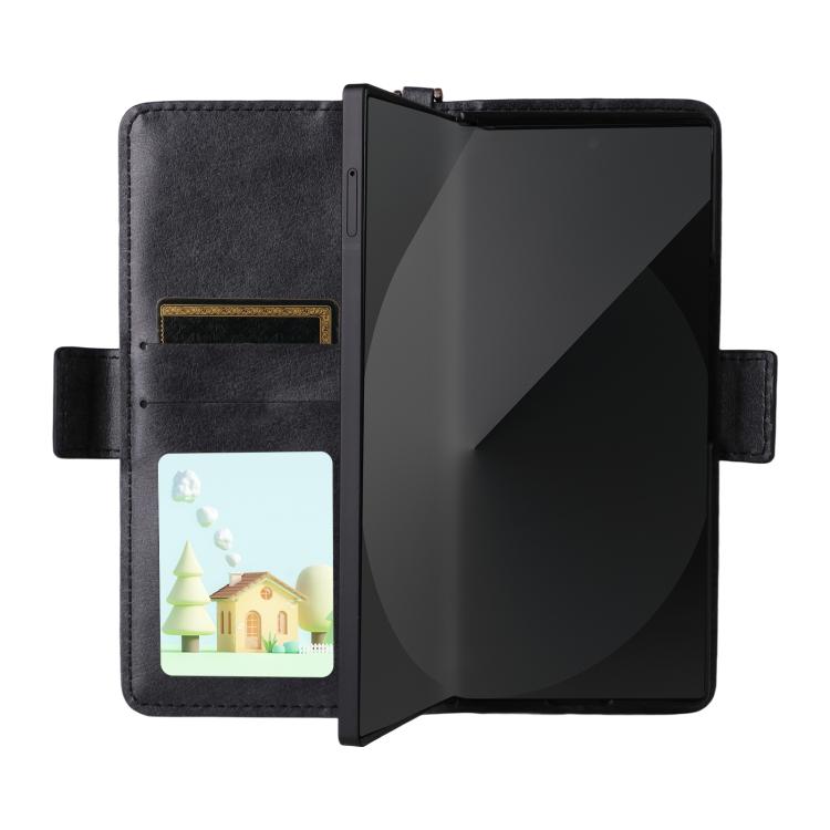 Funda de piel de vacuno cruzada con ranuras para múltiples tarjetas para Samsung Galaxy Z Fold3 5G (negra)