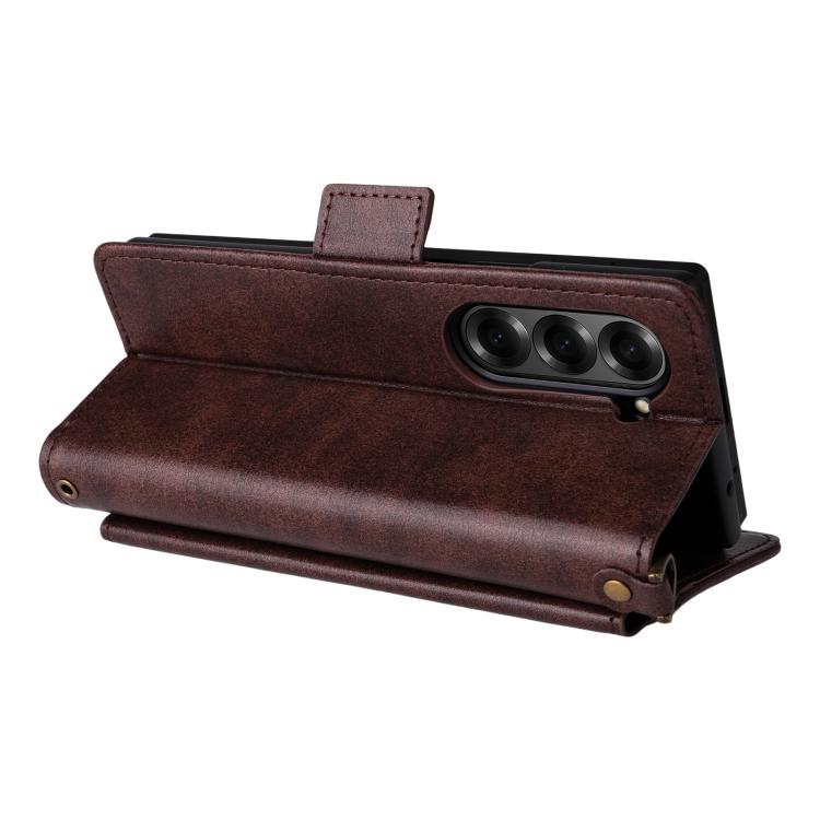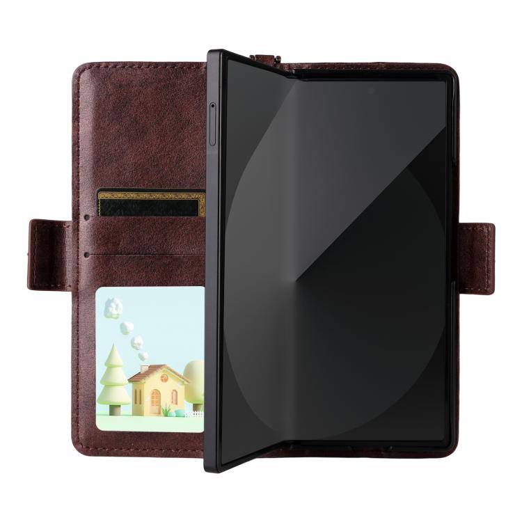 Funda de piel de vacuno cruzada con ranuras para múltiples tarjetas para Samsung Galaxy Z Fold6 5G (marrón)