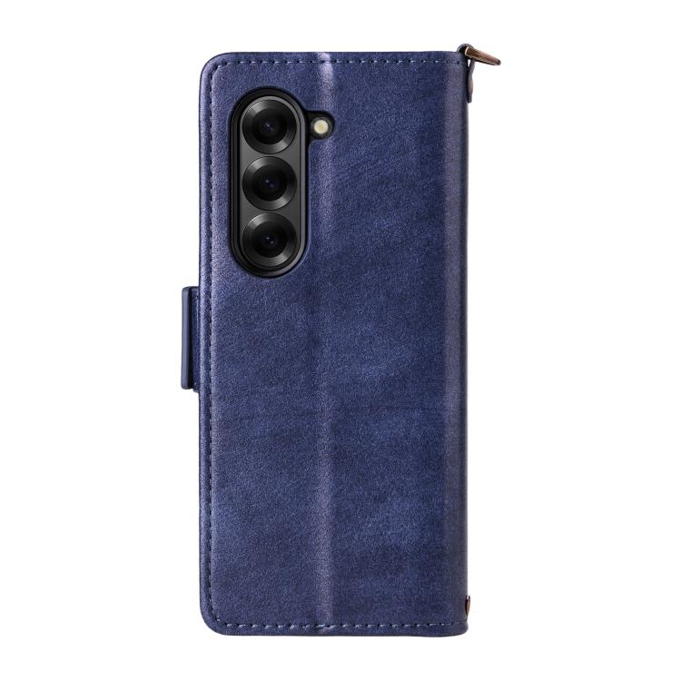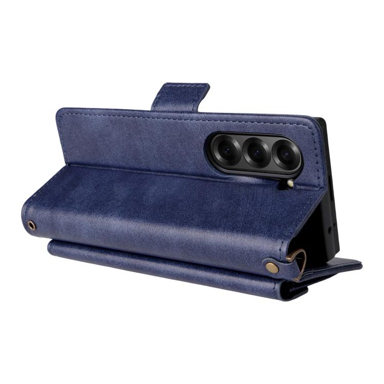 Funda de piel de vacuno cruzada con ranuras para múltiples tarjetas para Samsung Galaxy Z Fold7 5G (azul)