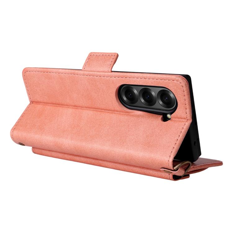 Funda de piel de vacuno cruzada con ranuras para múltiples tarjetas para Samsung Galaxy Z Fold7 5G (rosa)