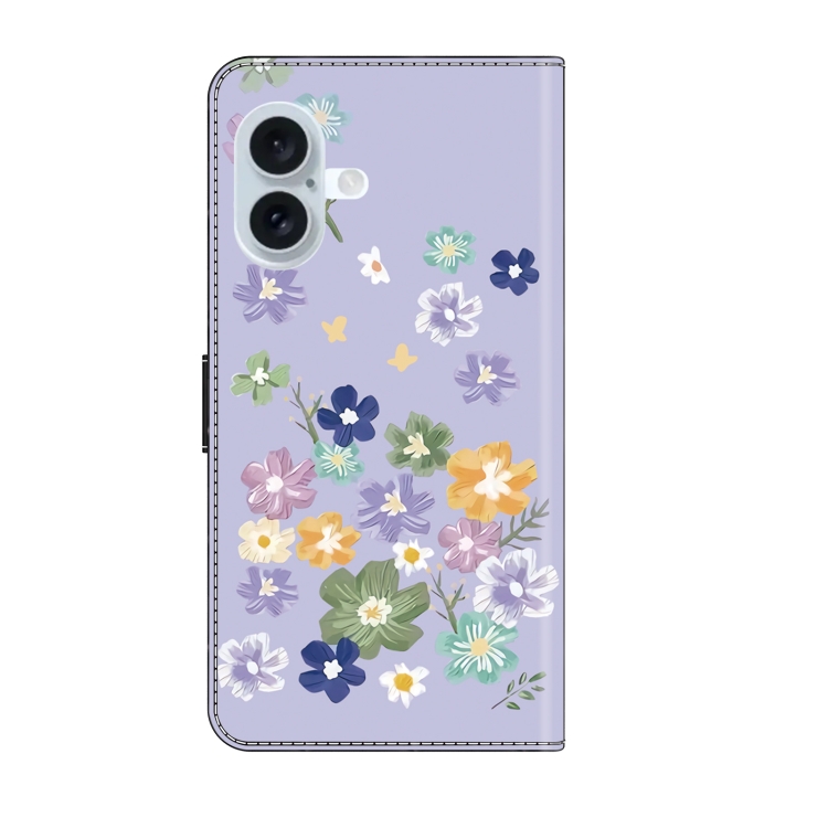 Funda de Piel para iPhone 16 Pintada a Mano Floral (Morado)