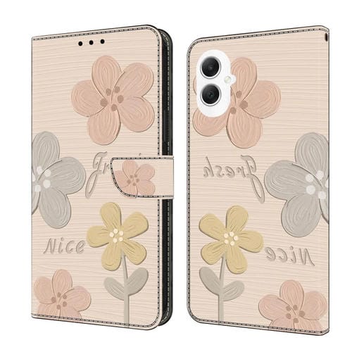 Funda de Piel para Samsung Galaxy A05 Pintada a Mano con Flores (Beige)