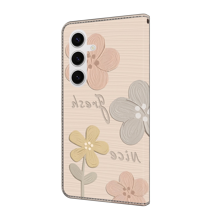 Funda de Piel Samsung Galaxy A34 5G Pintada a Mano Flores Beige