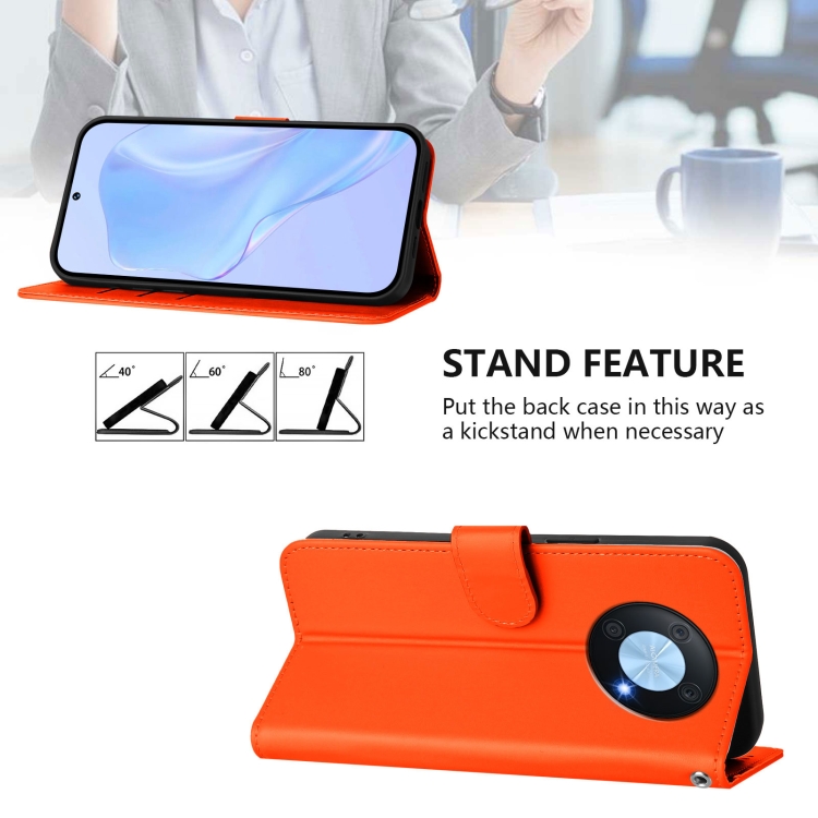 Funda de Piel Sintética con Cordón para Huawei Enjoy 50 Pro 4G y Nova Y90 (Naranja)