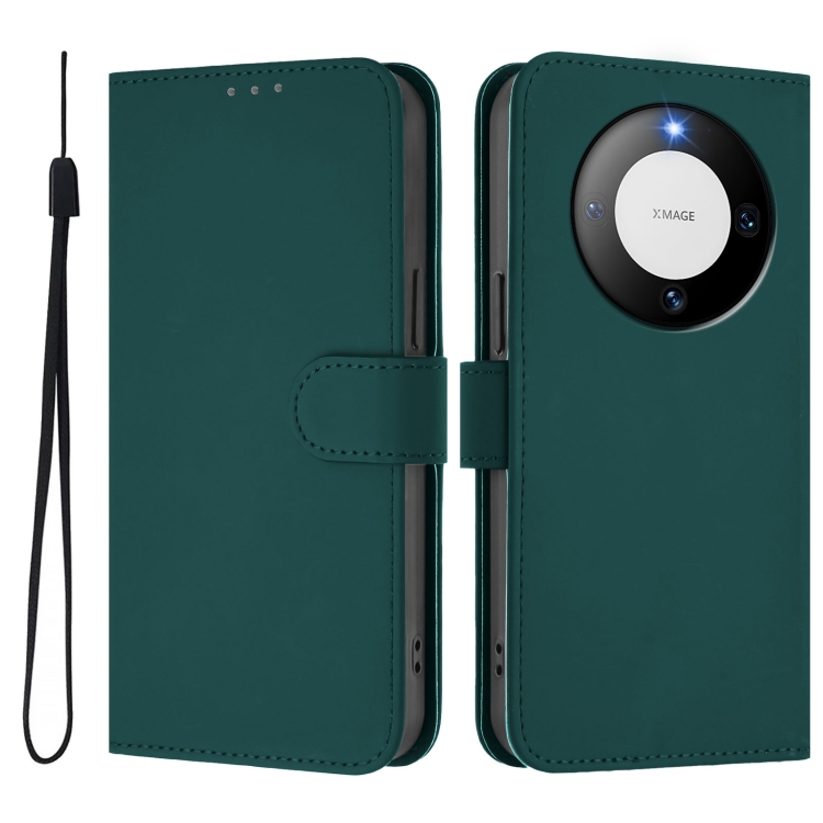 Funda de Piel Sintética con Cordón para Huawei Mate 60 Pro/60 Pro+ (Verde Oscuro)