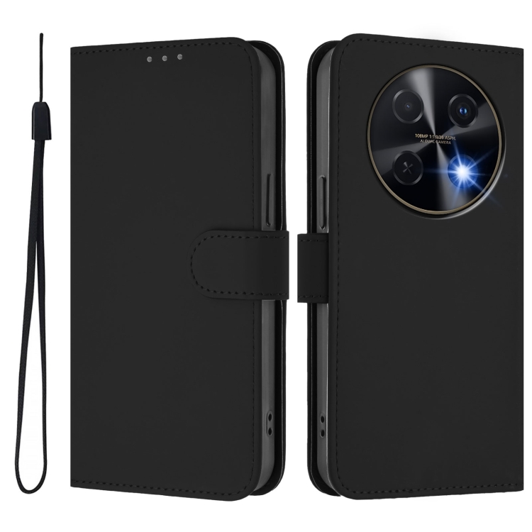 Funda de Piel Sintética con Cordón para Huawei Nova 12I 4G con Tacto de Piel (Negro)