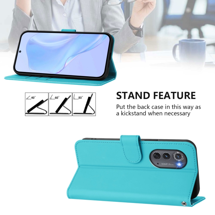 Funda de Piel Sintética con Cordón para Motorola Edge 2022 (Azul Lago)