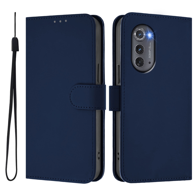Funda de Piel Sintética con Cordón para Motorola Edge 2022 (Azul Marino)