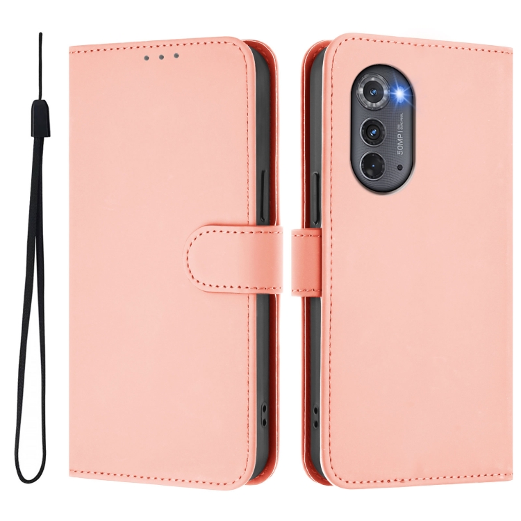 Funda de Piel Sintética con Cordón para Motorola Edge 2022 (Rosa)