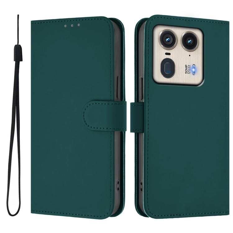 Funda de Piel Sintética con Cordón para Motorola Edge 50 Ultra/X50 Ultra (Verde Oscuro)