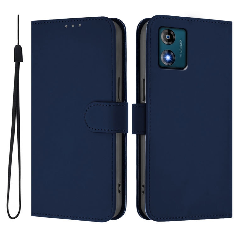Funda de Piel Sintética con Cordón para Motorola Moto E13 (Azul Marino)