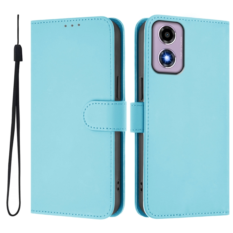 Funda de Piel Sintética con Cordón para Motorola Moto E14/G04 4G (Azul Cielo)