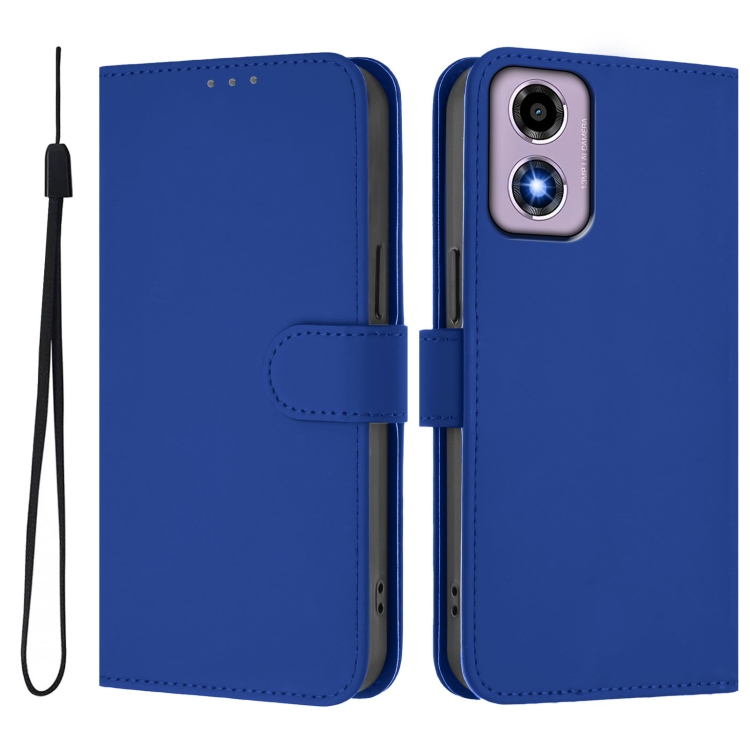 Funda de Piel Sintética con Cordón para Motorola Moto E14/G04 4G (Azul Oscuro)