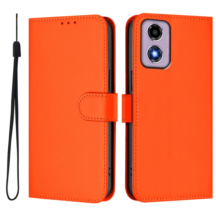 Funda de Piel Sintética con Cordón para Motorola Moto E14/G04 4G (Naranja)
