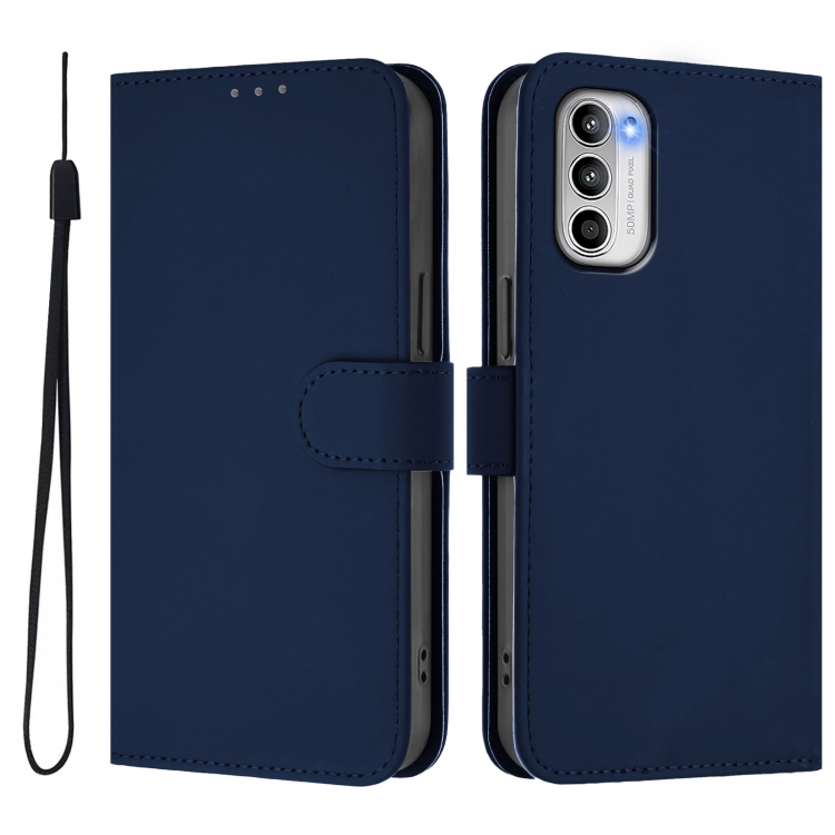 Funda de Piel Sintética con Cordón para Motorola Moto G 5G (2022) (Azul Marino)