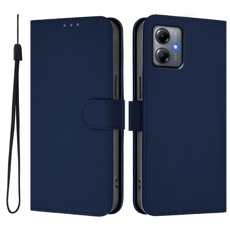 Funda de Piel Sintética con Cordón para Motorola Moto G14 4G (Azul Marino)