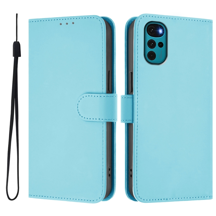 Funda de Piel Sintética con Cordón para Motorola Moto G22 4G/E32S (Azul Cielo)