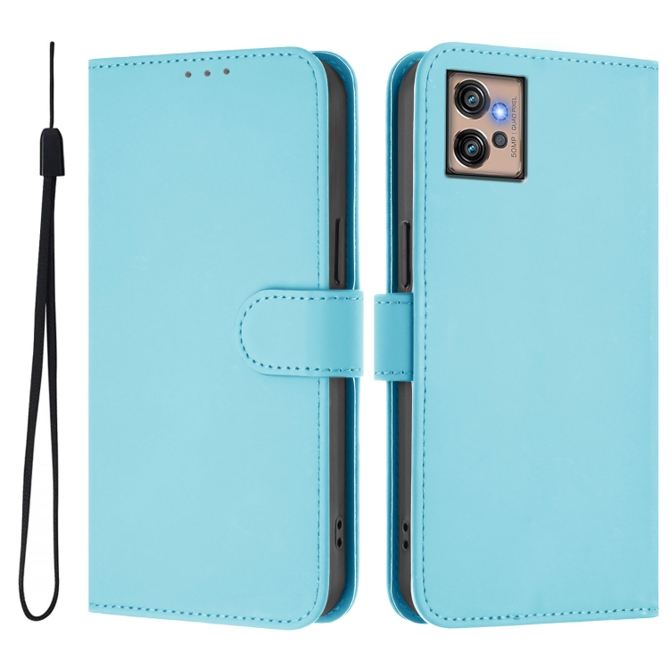 Funda de Piel Sintética con Cordón para Motorola Moto G32 (Azul Cielo)