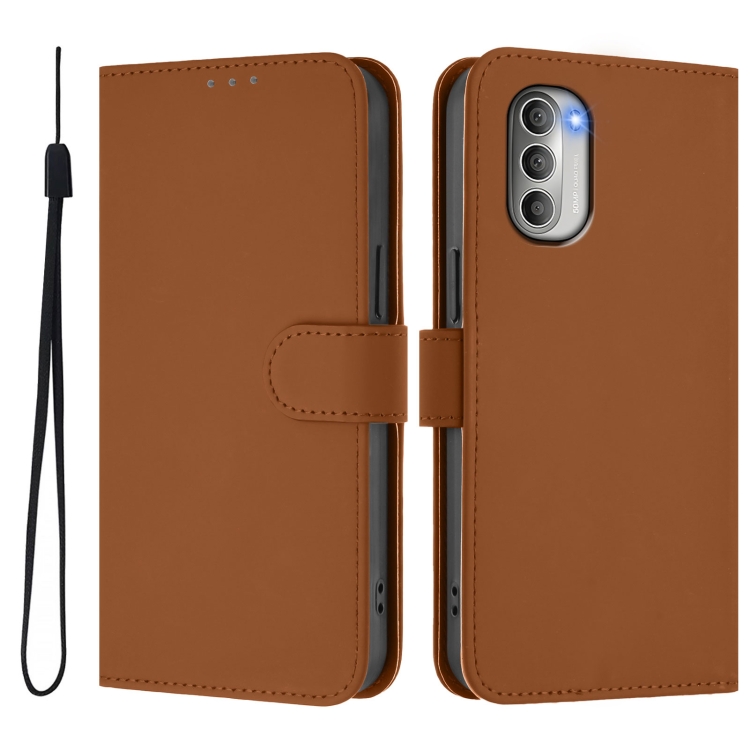 Funda de Piel Sintética con Cordón para Motorola Moto G51 5G (Marrón)