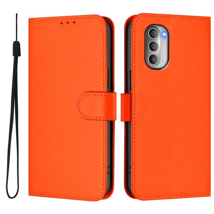 Funda de Piel Sintética con Cordón para Motorola Moto G51 5G (Naranja)
