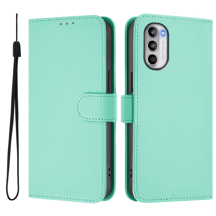 Funda de Piel Sintética con Cordón para Motorola Moto G52 4G y G82 5G (Verde Menta)