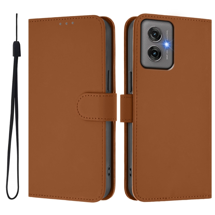 Funda de Piel Sintética con Cordón para Motorola Moto G55 (Marrón)