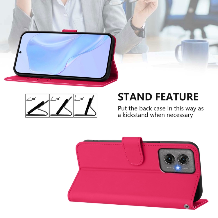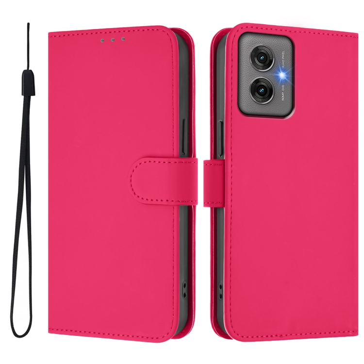 Funda de Piel Sintética con Cordón para Motorola Moto G55 (Rosa y Rojo)