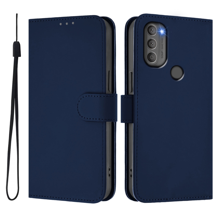 Funda Piel Sintética con Cordón para Motorola Moto G71 5G (Azul Marino)