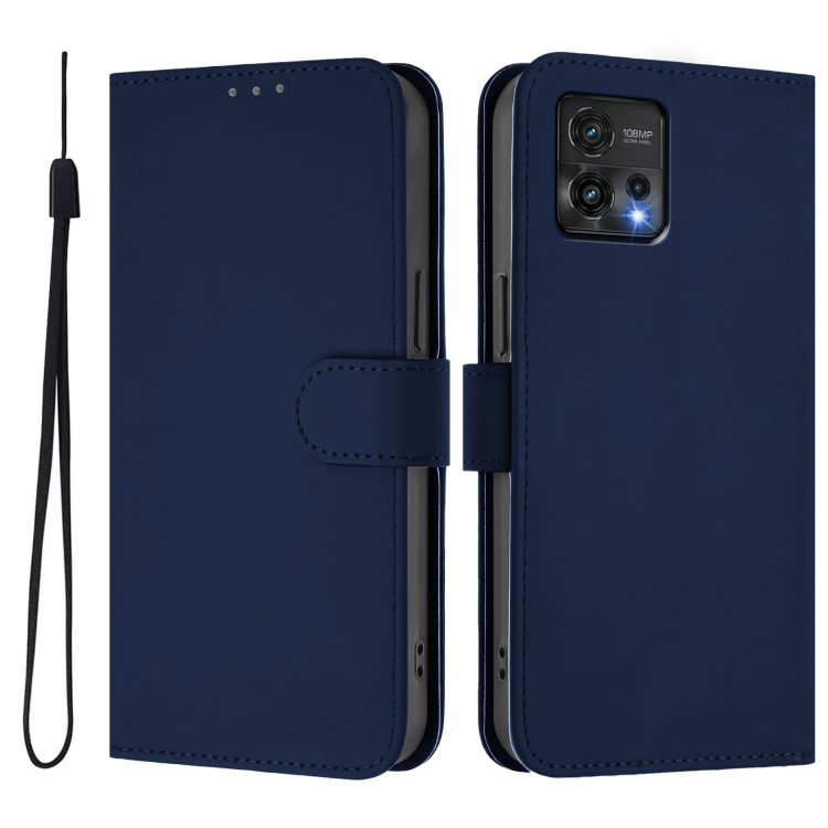 Funda de Piel Sintética con Cordón para Motorola Moto G72 (Azul Marino)