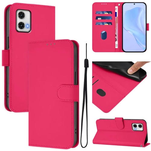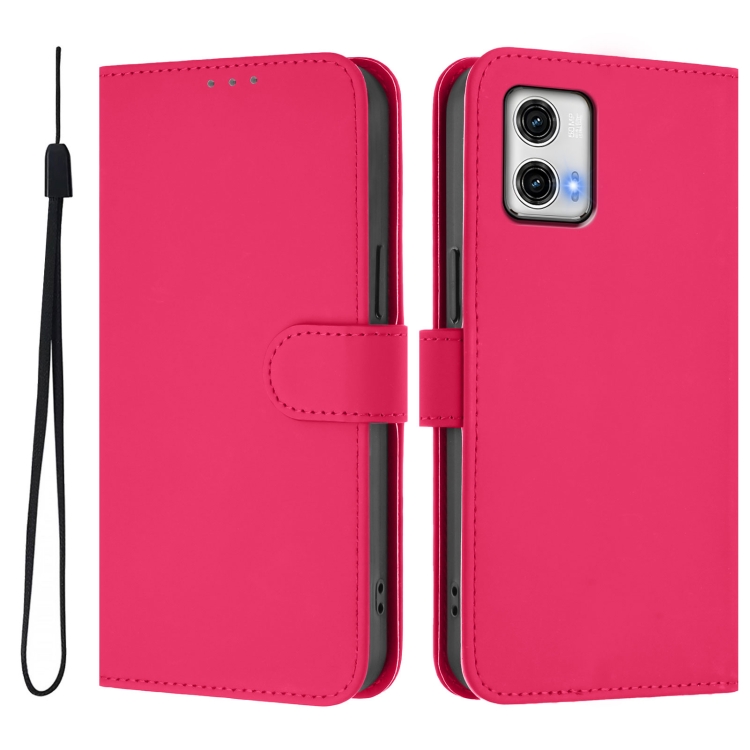 Funda de Piel Sintética con Cordón para Motorola Moto G73 5G (Rosa y Rojo)