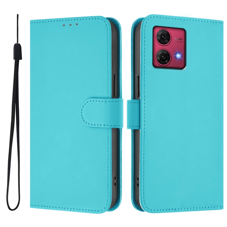 Funda de Piel Sintética con Cordón para Motorola Moto G84 5G (Azul Lago)