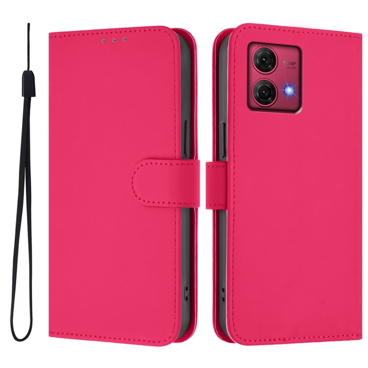 Funda de Piel Sintética con Cordón para Motorola Moto G84 5G (Rosa y Rojo)