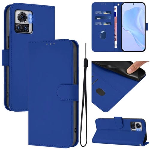 Funda de Piel Sintética con Cordón para Motorola Moto X30 Pro 5G (Azul Oscuro)