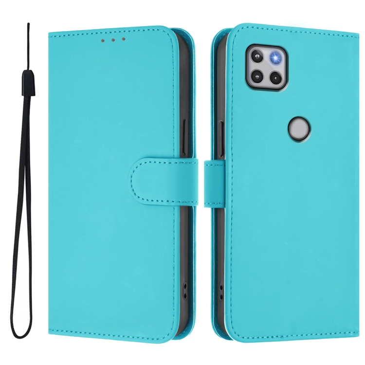 Funda de Piel Sintética con Cordón para Motorola One 5G Ace (Azul Lago)