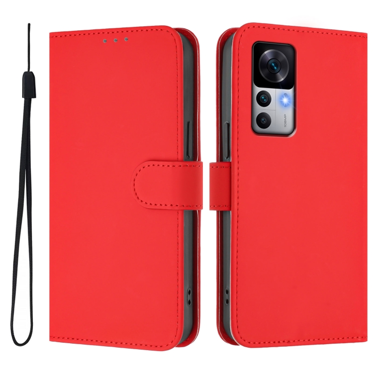 Funda de Piel Sintética con Cordón para Redmi K50 Ultra Skin Feel de Color Liso (Rojo)
