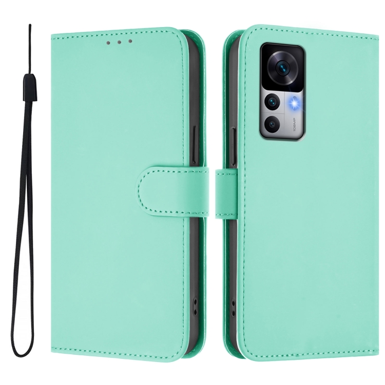 Funda de Piel Sintética con Cordón para Redmi K50 Ultra Skin Feel de Color Liso (Verde Menta)