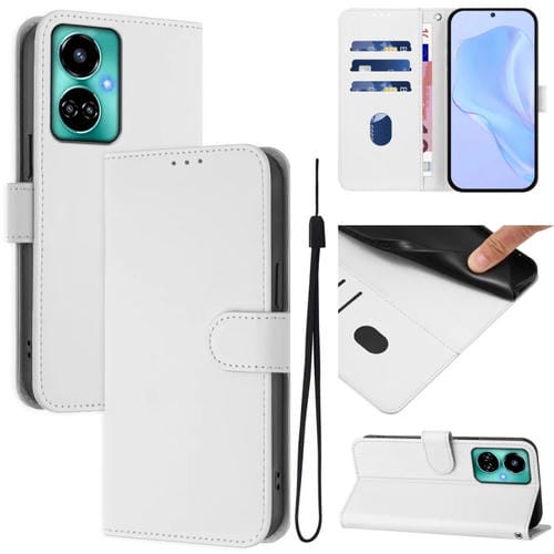 Funda de Piel Sintética con Cordón para Tecno Camon 19/19 Pro 5G (Blanco)