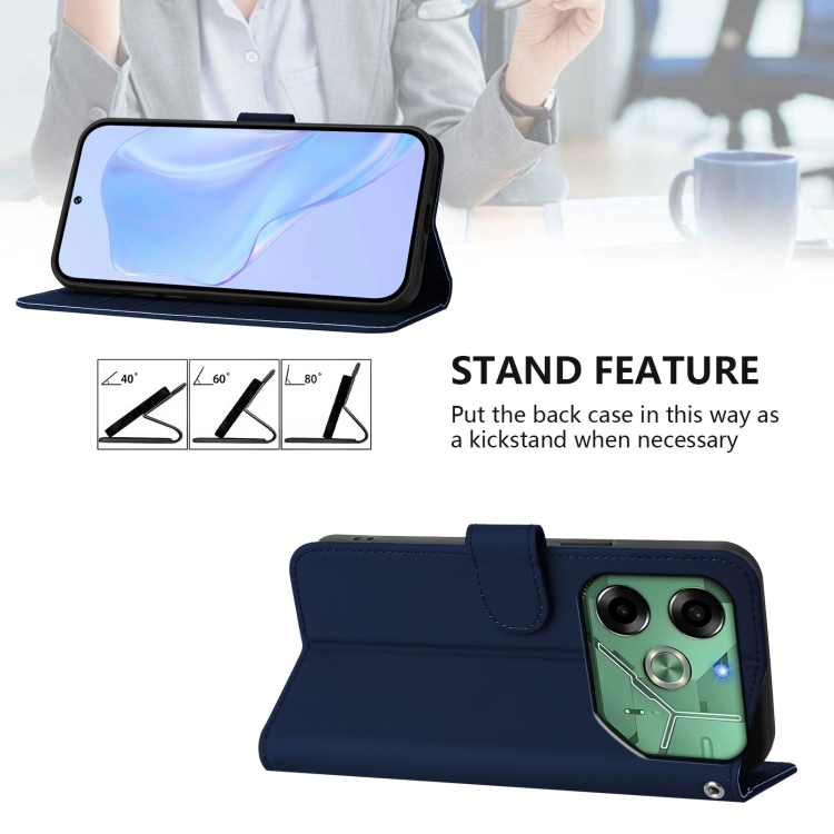 Funda de Piel para Tecno Pova 6 4G con Textura y Cordón (Azul Marino)